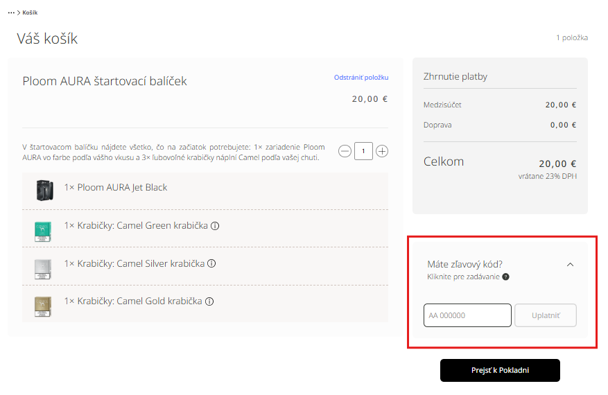 Pri dokončovaní objednávky zadajte zľavový kód do poľa pre kupón v nákupnom košíku.